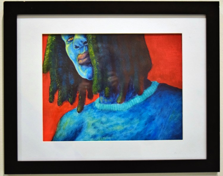 WATERCOLOR: Amani Hoskin, Self Portrait in Blue